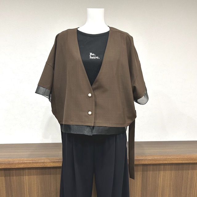 ※おまとめで20,000円以上のお買い上げで送料が無料となります 追加のお買い物ばある場合など、ライン公式にてお知らせくださいませ ※sold outの場合、メーカーさん問い合わせもできます。その時はライン公式から ご連絡くださいませ ■ えりぬき2wayアクセントブラウケット■ ★4月中~下旬入荷予定 【カラー】 ベージュ×白(11) グレー×白(77) チャコール×ベージュ(78) 茶×黒(85) 黒×黒(88) 【サイズ】 F( (平置きで) 身巾:約144㎝ 着丈:約58.5㎝ 袖丈:約51cm(オーガンジー約4㎝含む) 【素材】 本体:ポリエステル96%・ポリウレタン4% 別布:ポリエステル100% 生地の厚さ:薄手★ ふつう☆ 厚手☆ 伸縮性:なし 透け感:あり 裏地:なし 光沢感:少々あり ポケット:あり 水洗い:可 ********************** ・不良品以外の返品交換はできかねますので、何かございましたら購入手続き前に ライン公式からお気軽にお問い合わせください。 ・「サイズが合わない」「イメージと違う」「注文を間違えた」等お客様のご都合による返品交換もお受け出来かねます。 ・撮影した商品は実際の色味に近づけてはおりますが、モデル画像と商品画像のお色が多少異 なる場合が御座います。お客様がご覧になっているモニター・画面環境・照明などの関係上、実際の色味と多少異なる場合が御座います。 予めご了承くださいませ
