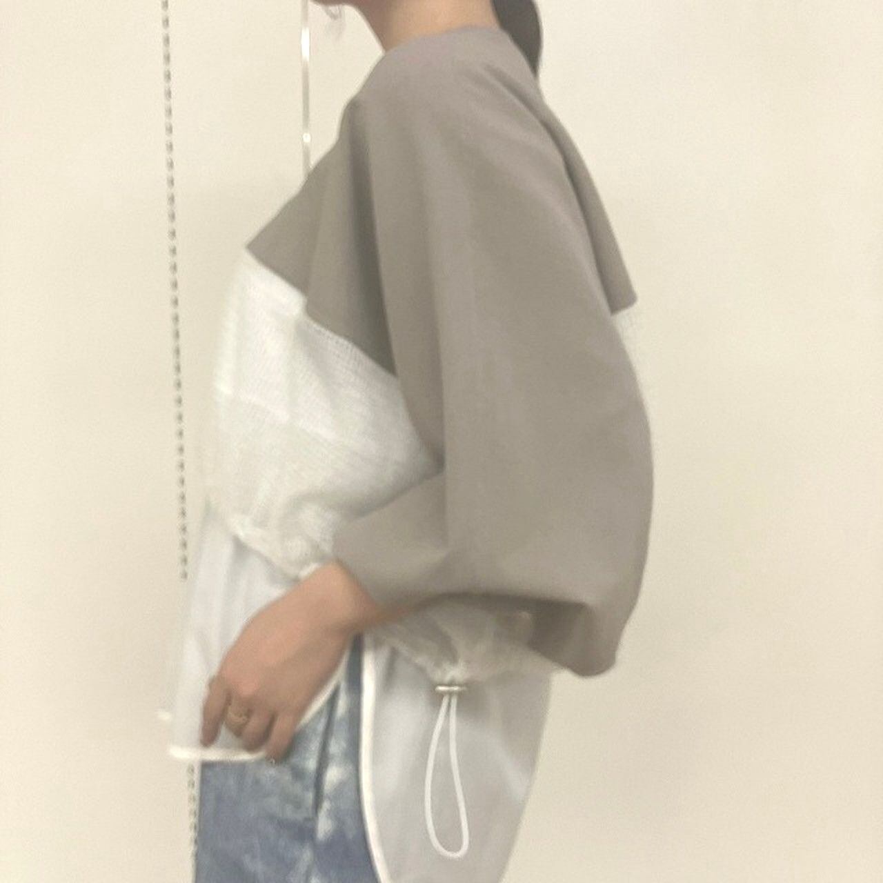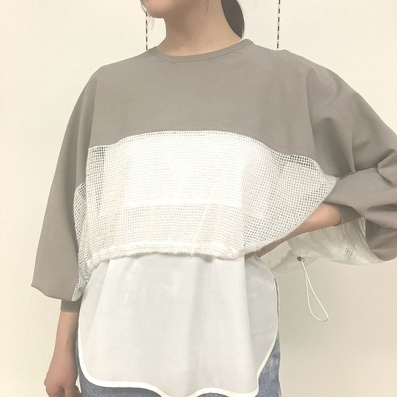 【【脚長・小柄さんOK】異素材ドッキングメッシュプルオーバー】