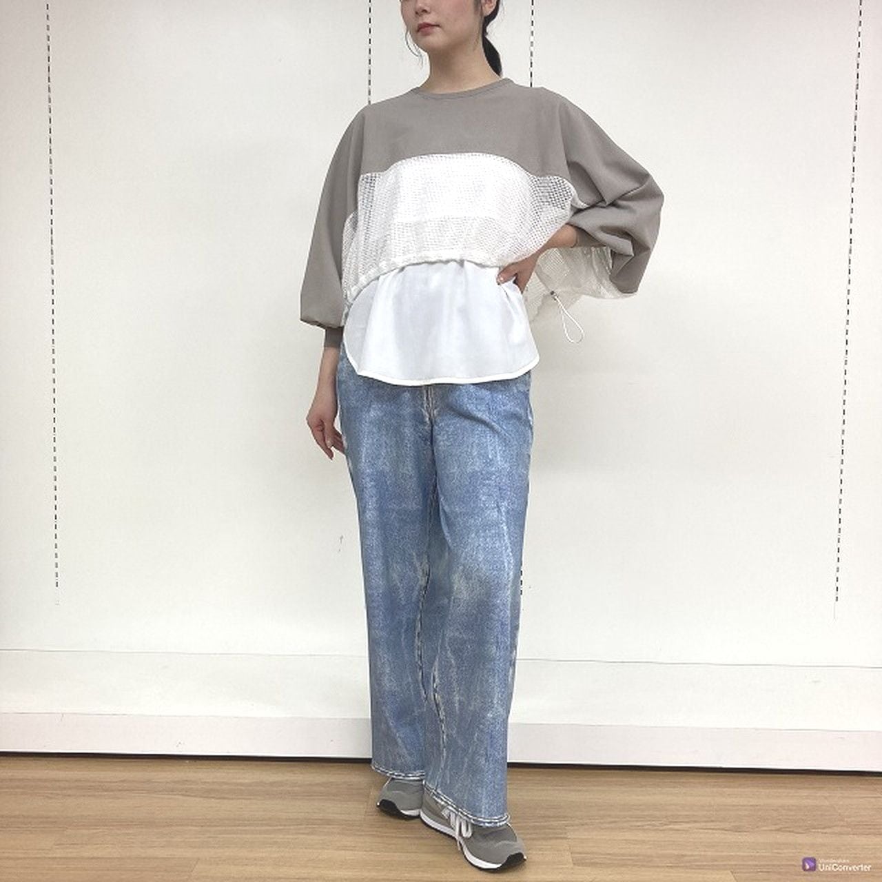 9/20Live 【脚長・小柄さんOK】異素材ドッキングメッシュプルオーバー